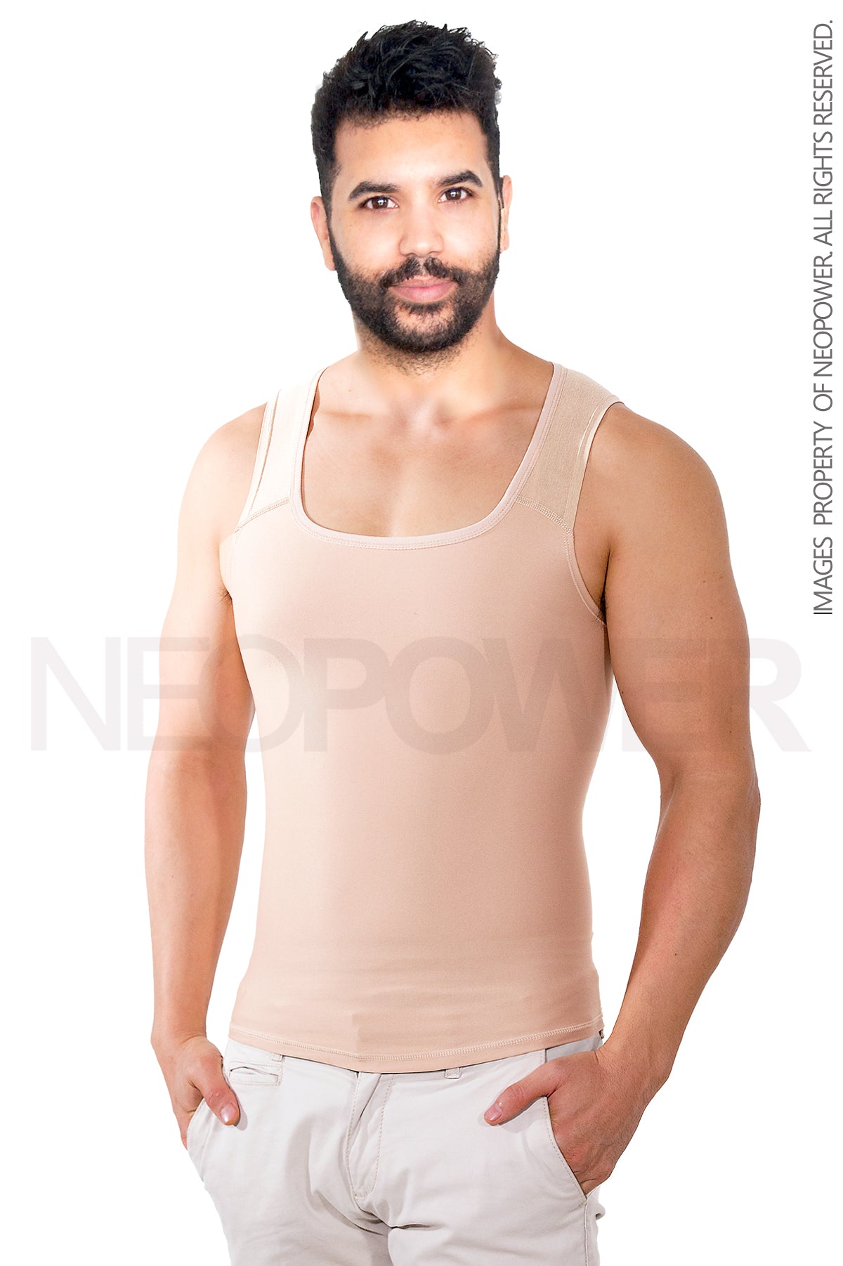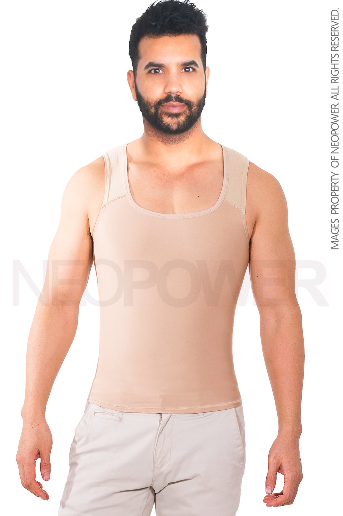 -Efecto invisible. Perfecta para uso diario y gym.Alta compresión. Moldea pectorales y ayuda a reducirlos cuando hay sobrepeso. Color beige y negro para uso con cualquier prenda y en cualquier clima.